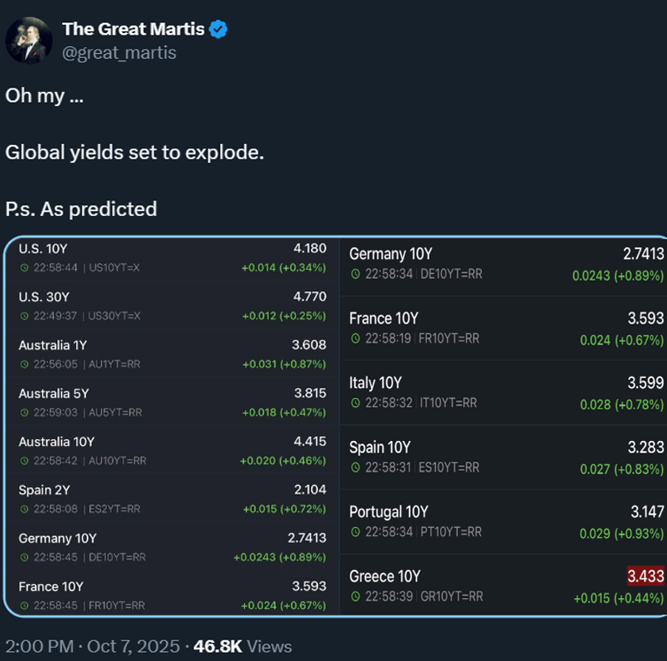 En dan komen we bij de ‘pacemaker’ van de hele markt: de centrale banken. Die vervalsen het hele spel. Want daar waar we vandaag diep in de angst horen te zitten over de “Everything Bubble” (en goud is daar geen uitzondering op), hoor ik alleen maar meer hebzucht richting nog hogere prijzen. Met andere woorden: als zelfs Paul D’Hoore goud aanprijst, dan weet je dat het laat op de dag is. Nu nog een artikel over goud in de Humo (de Knack voor kinderen) en dan weet je hoe laat het is: verkopen die handel. Goud heeft mij jaren gediend, maar ik ben met geen enkele investering getrouwd. Ik ben getrouwd met de vrouw in mezelf.